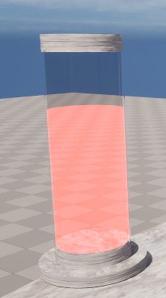 I think a big crystal model would fit well for the pillar as they look like big tanks of fluid which I think feels more bio-punk than ‘magic’ – replacing the glass segment’s static mesh with a crystal model should be the only work as the health and damage chip part’s materials are additive meaning the overlapping parts of the crystal should be coloured in.