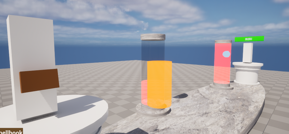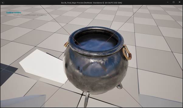 The lack of models and materials is bugging me greatly, for the time being I want to add a cauldron model, I’ve added a cylinder as ‘liquid’ with a water material with an overlay material made to match whatever final potion is created