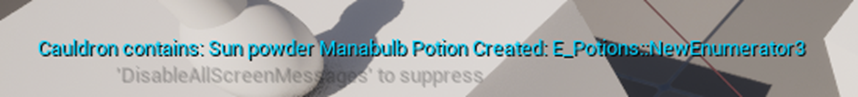 I’ve also added a string that appends each item added to the contests list which I’m printing on cauldron tick event just so I can have an active indicator while testing what’s actually in the cauldron. I’ve additionally appended the resulting potion when it’s created as well.