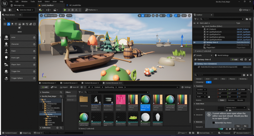 The log required 51 materials to be applied individually and didn’t look right in the end, and the trees I found all came as part of a giant asset set which would be perfect if they were all one static mesh